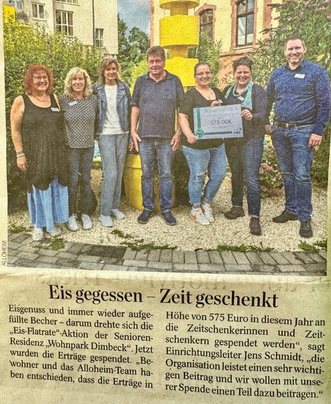Das Alloheim in der Dimbeck spendet den Zeitschenker*innen den Erlös der Eisflatrate-Party. Danke an dieses engagierteTeam für den tollen Nachmittag und die großzügige Spende. Ihr seid super!